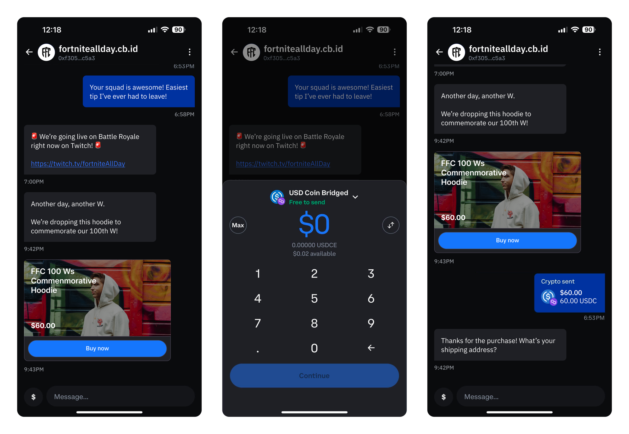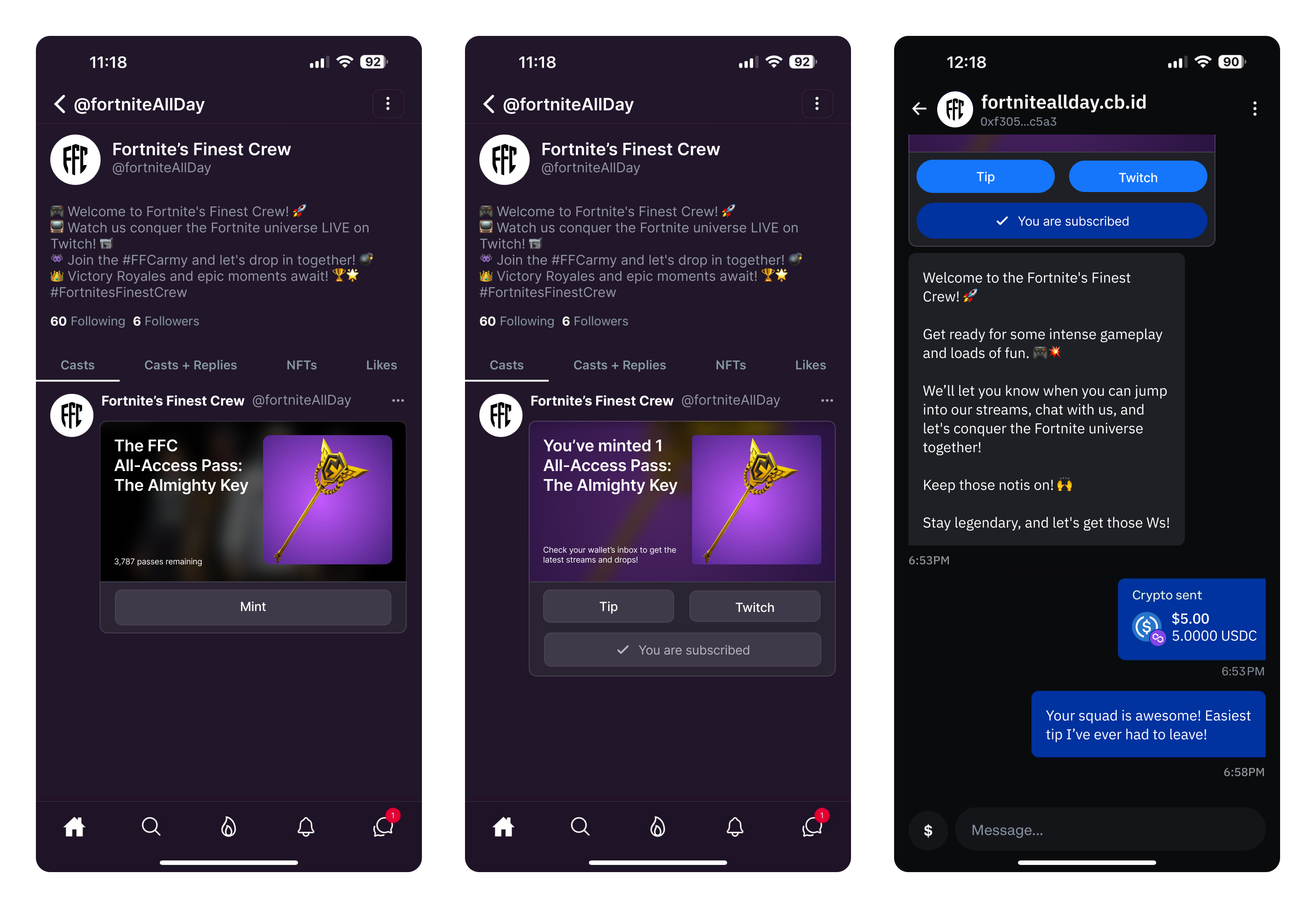 For example: picture minting on Farcaster, and tipping in private DMs.